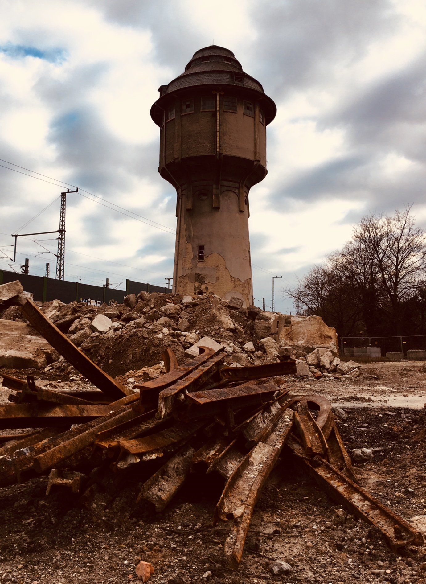 Inmitten des Europaviertels, in prominenter Lage zwischen Messe, S-Bahnhof und Europa-Allee liegt der alte Wasserturm des ehemaligen Frankfurter Hauptgüterbahnhofs. Eigentümer ist die Stadt Frankfurt. Verlassen und halb verfallen harrt er der Dinge, die sich da hoffentlich bald entwickeln mögen...